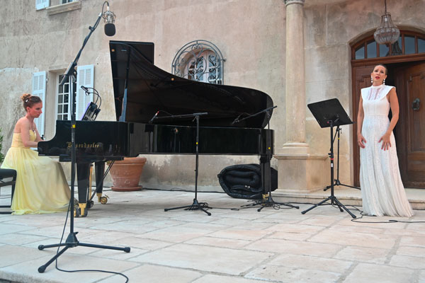 La magie de la musique de Stéphanie Humeau et les voix chargées d’émotions du duo Chloé Chaume et Mickael Spadaccini ont ensuite charmé les nombreux mélomanes, amateurs d’art lyrique et d’art de vivre. La musicologue Marie-Automne Peyrègne a présenté avec humour et finesse les quatre parties du concert, entrecoupées de récitals de piano de Stéphanie Humeau.