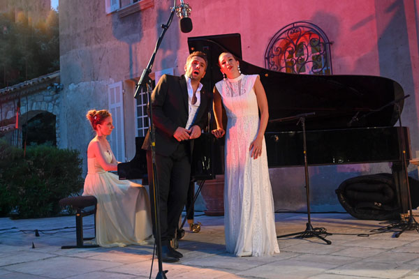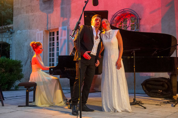 Château Roubine: comme Juliette à son balcon, la lune et les étoiles au-dessus du prestigieux domaine viticole se sont penchées pour écouter les chants des humains pris de passions l’un pour l’autre. Dans un répertoire de célèbres duos d’amour de l’opéra, la soprano Chloé Chaume et du ténor Mickael Spadaccini ont porté au sublime les tourments des amours – désespérées et souvent tragiques à l’opéra! Les stars de la scène lyrique était accompagnées par la pianiste virtuose Stéphanie Humeau, qui a brillamment interprété des œuvres majeures lors de ses intermèdes musicaux.