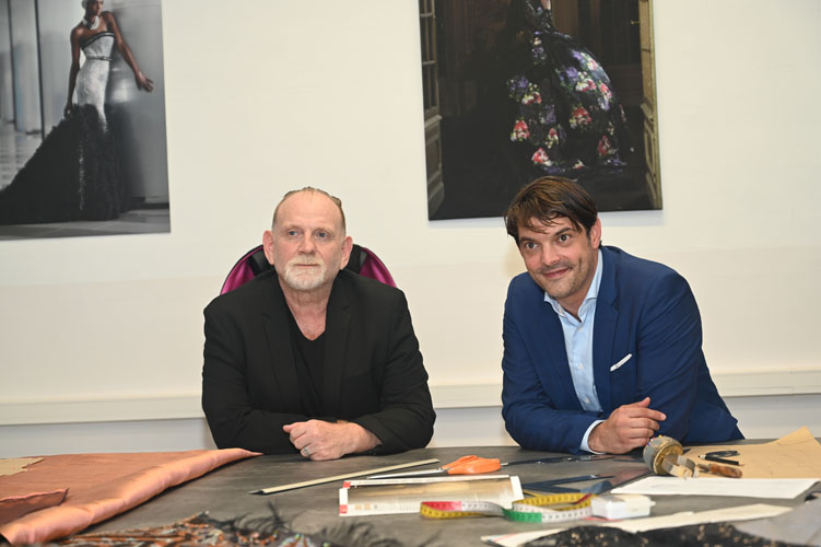Denis Durand et Jérôme Viaud devant une création signé Denis Durand Couture ©YesICannes.com