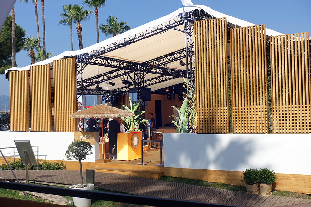 Composé de treillis, dans une décoration de bois brut, de canapés blancs et de coussins géants multicolores, le bar du Havas Café dispense cafés et délicieux rafraîchissement tout au long de la journée. Les partenaires Lacoste, Citroën, Roche Bobois, Pernod Ricard, Décathlon, MediaMath et Evian ont participé au succès de cette espace de convivialité, de détente et de networking.