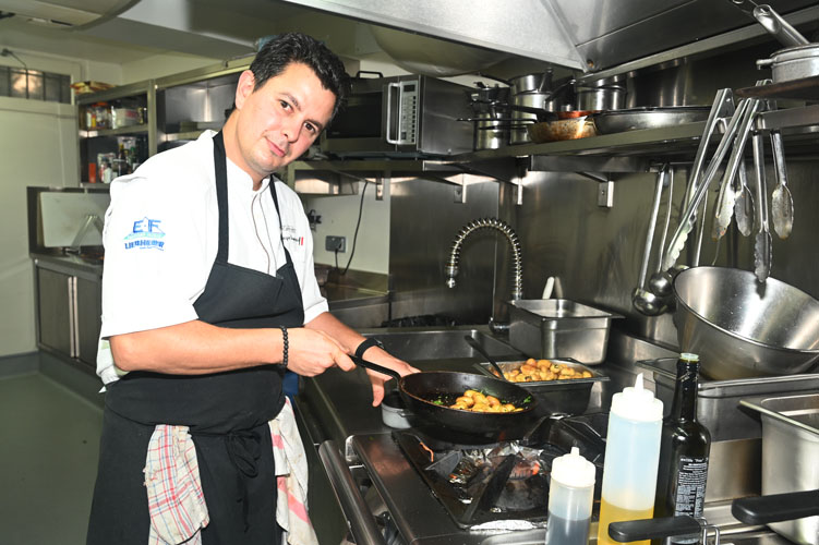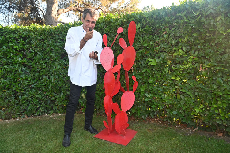 Benjamin Bourgoin devant ses oeuvres gastronomiques ©YesICannes.