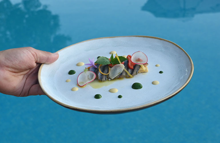 Jérôme Héraud et Benjamin Bourgoin puisent leurs inspirations dans la richesse de la nature méditerranéenne pour concocter ses savoureuses recettes comme le cabillaud demi-sel : cuit à la vapeur, arrosé d’huile d’olive et basilic frais ou l’Épaule Confite Doucement et Parfumées d’herbes Aromatiques provenant du jardin personnel du chef. Côté douceurs, Les Fruits Rouges en Infusion à la Mélisse du Jardin, Tuile au Grué de Cacao est une véritable ode à la nature.