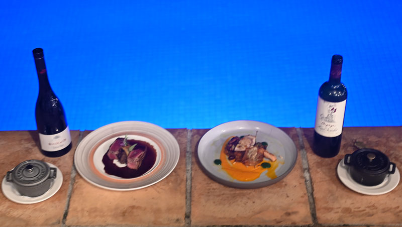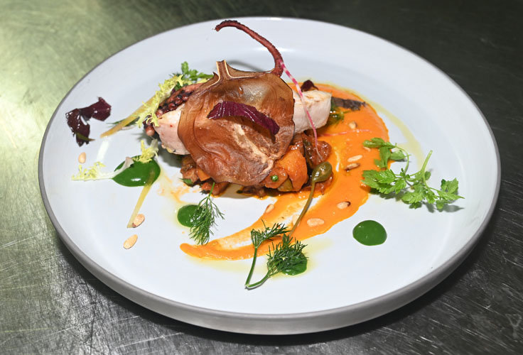 Duo d »espadon et de poulpe, caponata d’aubergines aux abricots