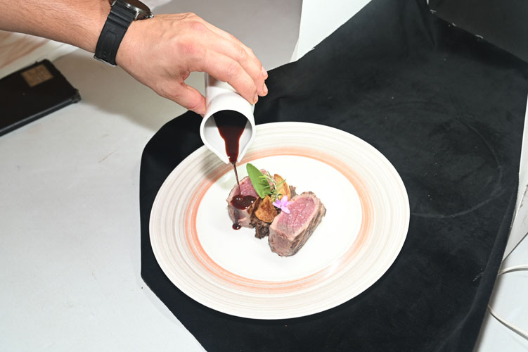 Bœuf du Piémont, pièce de faux filet grillé, effiloché de daube à la niçoise, jus corsé, pomme purée.