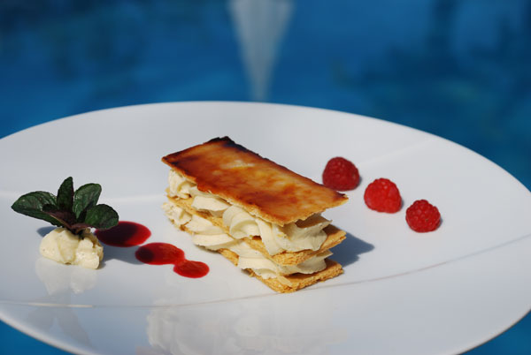 A l’occasion de l’anniversaire de l’hôtel, les propriétaires et le chef Jérôme Heraud ont lancé la nouvelle saison du restaurant gastronomique La Table du Cantemerle. Le Chef Jérôme Héraud prône les valeurs d’authenticité, d’hédonisme et du charme provençal et puise ses inspirations dans l’atmosphère nature et Provençale où il a aménagé un jardin aux herbes: thym, bergamote, menthe, plantées tout autour de la terrasse… Cet adepte du produit de terroir met un soin particulier à débusquer des fournisseurs amoureux de leurs produits. Le chef propose une carte inventive, inspirée de la mer et du terroir: Raviolis de crevettes «fumées minute», et bisque crémée à la citronnelle; Ombrine grillée, caviar d’aubergines, parmesan et agrumes. La chef pâtissière Anne-Laure Schirrer propose une Coque de chocolat noir de ganache crue de Sao Tomé, cœur de passion et prasla.