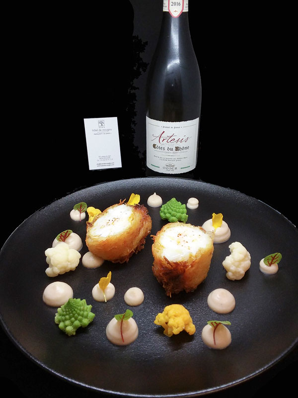 Quant aux épicuriens, ils vivrons des moments gastronomiques et œnologiques inoubliables, au diapason de ce cadre féérique. Au Jardin, la carte élaborée par le jeune et talentueux chef Basile Arnaud livre en quelques pages un récital de cuisine absolument époustouflant, 100% maison, frais et raffiné.