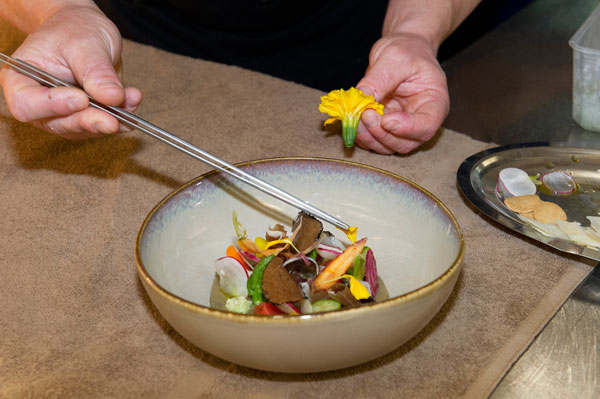 Le chef puise également son inspiration dans le terroir qui irrigue à flot sa cuisine de mer et de terre et ses mets savamment revisités sont une ode au bien manger. Le chef passionné aime ressentir le produit pour restituer toutes ses saveurs sans le bousculer.