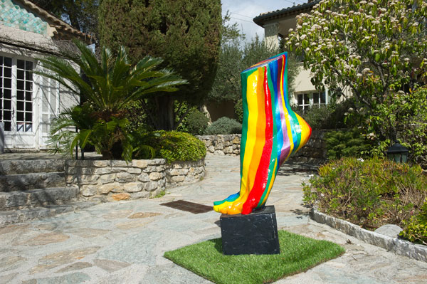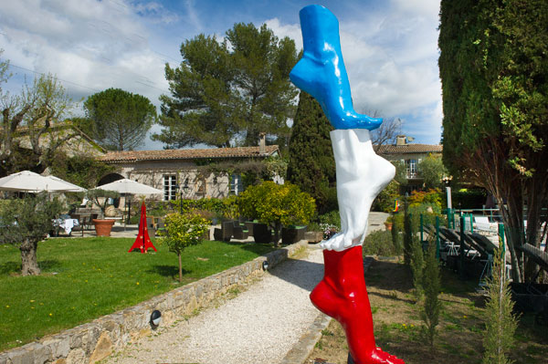 A l’intérieur, la salle à manger élégante et spacieuse ouvre sur une verrière à la ferronnerie ouvragée façon Art Déco. Aux beaux jours, sur la somptueuse terrasse en pierre bercée par le chant des cigales, les amateurs d’art pourront s’installer à l’ombre d’un somptueux frêne centenaire pour admirer les œuvres d’artistes qui parsèment les pelouses ou siroter un cocktail maison confortablement assis dans des fauteuils en rotin noir.