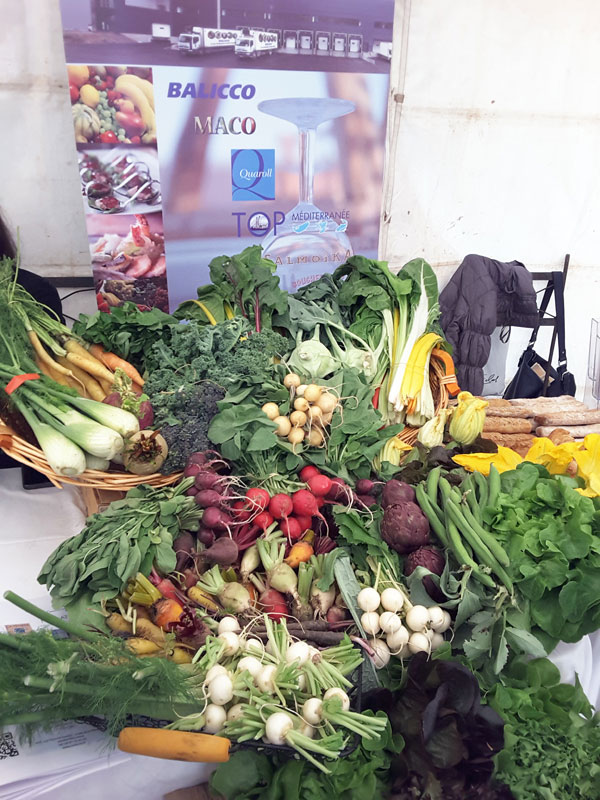 Dès le matin, de nombreux stands de producteurs et cultivateurs du Var et des Alpes-Maritimes ont envahis les jardins du Château Saint Martin. Dans une atmosphère trépidante et joyeuse, chacun avait à cœur de faire découvrir aux professionnels du monde de la gastronomie un large choix de produits du terroir azuréen. Ainsi se côtoyaient les délicieux petits pains artisanaux de Pain Petitfour, basé à Saint André de la Roche près de Nice, les chips de la maison Socca Chips, les tomates, poivrons, aubergines, radis bios, ou encore les délicieux macarons de MicMac Macarons de Bruno Lafargue.