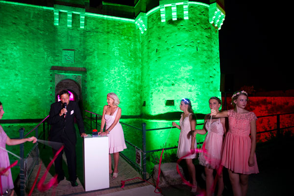 À l’origine de la manifestation, Valérie Rousselle, des domaines Château Roubine et Sainte Béatrice, présidente de l’Organisation Internationale du Rosé, fondatrice de l’association de femmes vigneronnes Les Eléonores de Provence, dédiées à la promotion de l’art de vivre et des vins de Provence. Cette grande dame du vin avait invité l’architecte lumière Alain Guilhot, concepteur entre autres de la Fête des Lumières à Lyon, à procéder à l’illumination en rose de la forteresse de la Citadelle à la nuit tombée. Le tout en musique avec Trio Jazz, et le rock très tonique d’Alejandra Burgos, avant la prestation du DJ français Cerrone aux platines.