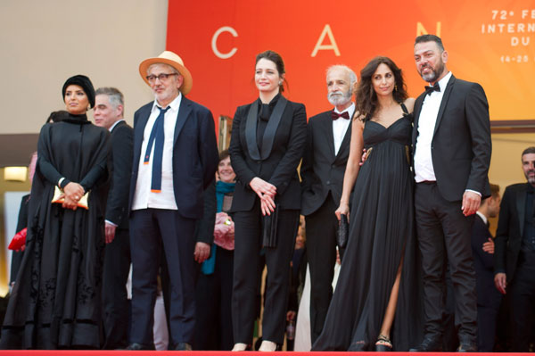Les acteurs de It Muste Be Heaven autour d’Elia Suleiman ©YesICannes.com