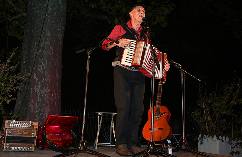 Michel Pellegrino a partagé la culture italienne, ses dialectes et sa joie de vivre au Château de Saint Martin avec un récital de chants italiens traditionnels dont beaucoup sont devenus des tubes planétaires.