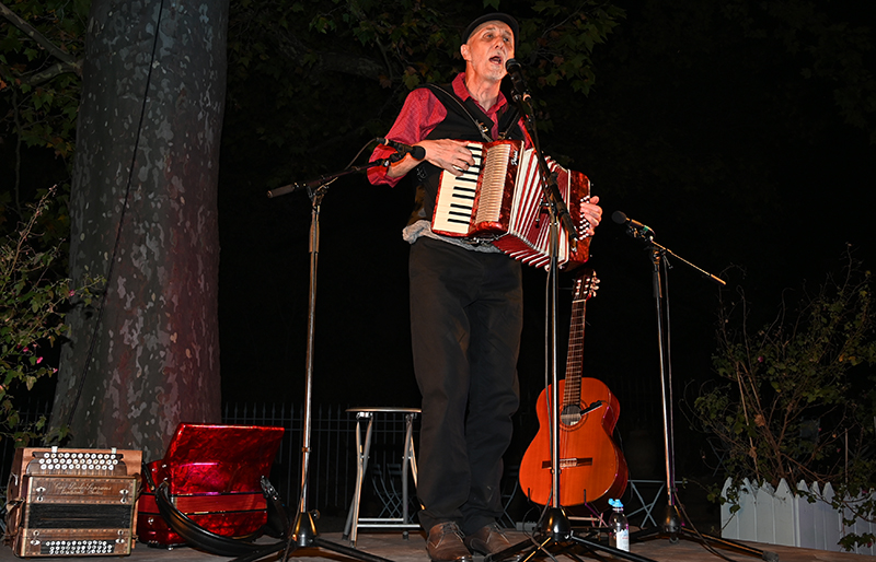 Récital de chants italiens traditionnels. Artiste à la personnalité attachante et musicien multi-instrumentiste de grand talent, Michel Pellegrino, originaire de Cueno par son père et de Venise par sa mère, passe avec une fascinante aisance du Jazz Latino, au Jazz Manouche, en passant par le Jazz américain. Le 12 aout 2021, les mélomanes du 9ème Festival des Musicales dans les Vignes, organisé par Marie-Jeanne Chauvin, ont découvert au prestigieux Château de Saint Martin une nouvelle facette du clarinettiste de Jazz: la chanson italienne, dans un répertoire de chants traditionnels célébrant autant le romantisme que la révolte, accompagné à la guitare et à l’accordéon.