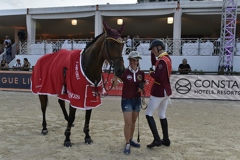 L’intensité est encore montée de plusieurs crans ce samedi à l’occasion de la troisième et dernière journée du concours. Mais toutes les attentions étaient tournées vers les deux épreuves du CSI5*. À 17h45, la seconde manche de la GCL présentée par Constance Hôtels a opposé les seize équipes du championnat. Seule formation à avoir aligné deux sans faute jeudi soir grâce au Belge Pieter Devos et l’Américain Brian Moggre, les Prague Lions sont partis avec un avantage conséquent. Les Lions de Prague ont réalisé une performance oscarisée convertissant leur pole position en une deuxième victoire de la saison et se catapultant à la deuxième place du championnat général de la Côte d’Azur. Christian Ahlmann (GER) et Max Kühner (AUT) des Swans de Shanghai ont réussi à conserver la deuxième place, tandis que le formidable duo composé d’Eric et Maikel van der Vleuten (NED), associé à Madrid In Motion, a pris la troisième place.