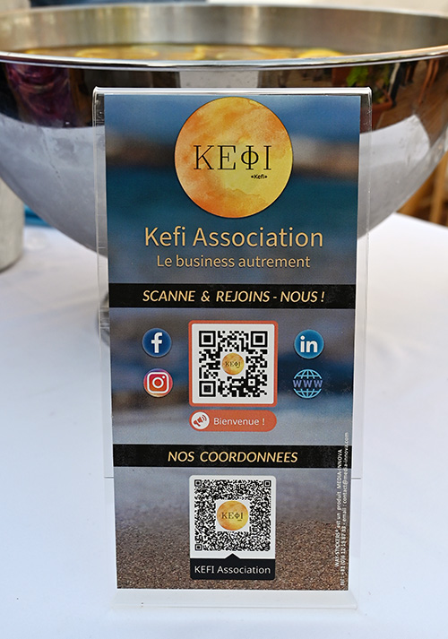 La soirée avançant, après la présentation des membres de l’association Kefi par Élodie Putteman et Céline Chauchet et la mise en avant de quelques commerciaux venus vanter leur produits, les convives ont pu s’installer confortablement autour de belle tables nappées agrémentées de verres cristallins et de couverts étincelants pour continuer leurs papotages conviviaux. Les effluves du parfum créé par Karine Deraco, subtilement distillés par les brumisateurs et présents sur les éventails Kefi ainsi que les emblématiques chaises bleues niçoise de l’artiste Sébastien Di Natale accrochées aux murs ont également donné le goût de la soirée.