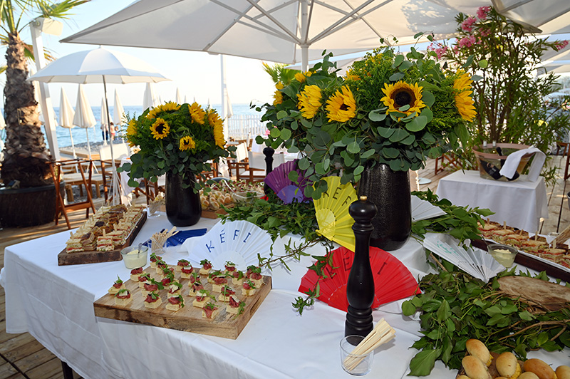 A leur arrivée sur la plage Baieta, dans une ambiance joyeuse et solaire, les convives, accueillis par les membres de l’association Kefi se sont vu remettre un badge numéroté portant le nom et la fonction de chacun, à accrocher autour du cou comme signe de reconnaissance. Dans un décor de carte postale, ou la douceur estivale conjuguée aux eaux turquoises de la Grande Bleue se confondant avec allégresse au bleu du ciel azuréen, l’Art de vivre azuréen et le business ont été le fer de lance de cette soirée placée sous le signe du business conviviale et de la bonne gastronomie.