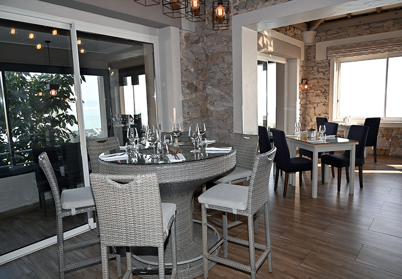 Filets d’Anchois de “Cetara», Espuma de Beurre; Croquette de Crabe, Sauce Aigre-douce; Carpaccio d’Espadon aux Agrumes; Mousse de Stockfish Montée à l’Huile Evo et Panais, Polenta grillée; Soupe de Rascasse, Poulpe & Langoustines parfumée au Fenouil sauvage; Raviolis de Daurade, Bisque à la Citronnelle & Tomates Confites; Dos de Cabillaud farci à la Crème de Saumon, Purée de Choux Fleur, Sauce au Beurre blanc & Huile d’Aneth; Brie aux Figues & Noix; Dacquoise aux Mûres, Ganache Mascarpone & Vanille.