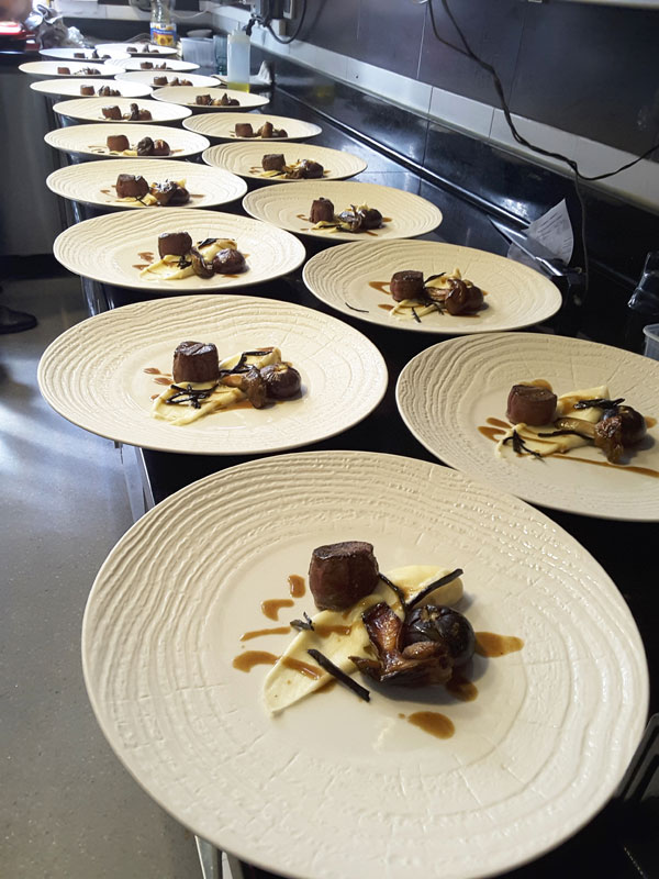 Ce gibier à la chair délicate et savoureuse, fine au palais, riche en goût et rosée à point, se marie parfaitement avec la douceur de la figue. La saveur rustique, raffinée et exceptionnelle des cèpes frais mariée au parfum de terre et de sous bois de la truffe, vient sublimer ce plat d’exception. L’ail confit fondant en bouche finit de donner toute la dimension à ce plat de roi.