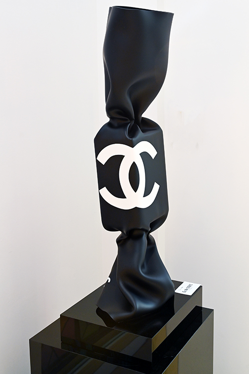 Cette matière elle se l’approprie et lui donne la forme d’un bonbon décoré et est décliné à l’infini. Ces bonbons deviendront sa signature et une façon d’exprimer sa sensibilité artistique.