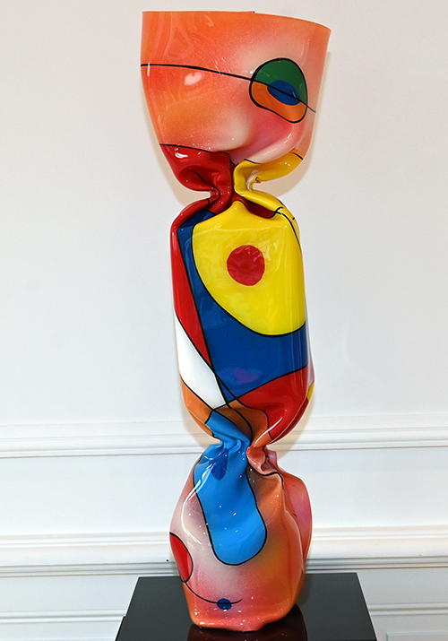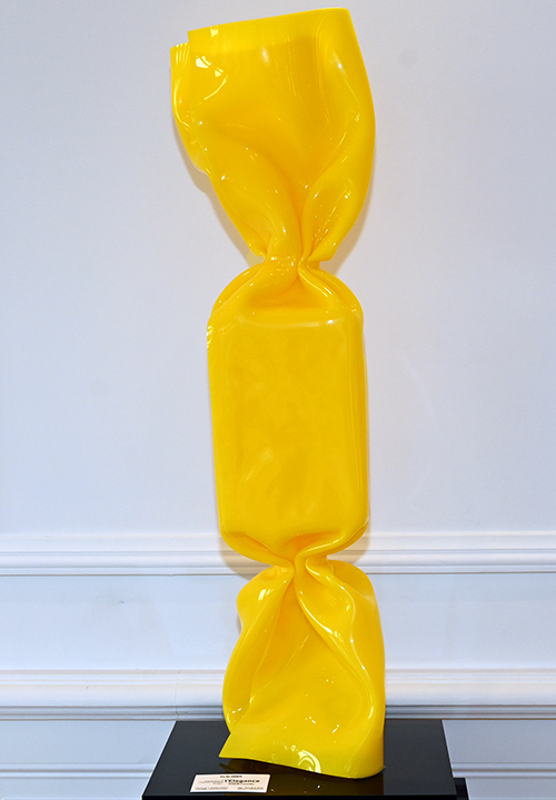 Et de continuer « Le bonbon, c’est tellement un sujet qui me touche au plus profond de moi-même comme vous l’avez si justement dit, j’en avais été privée durant mon enfance. Mais je pense qu’on a tous quelque part un rapport très particulier avec le bonbon. Il y a quelque chose de très fort qui se dégage de ce Bonbon et particulièrement de la torsion. Il faut savoir que ce n’est pas que le bonbon finalement, c’est la torsion en elle-même qui est mon sujet de prédilection. Et c’est cette torsion que j’exporte aujourd’hui à travers le monde.