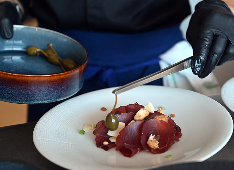 Du côté de la carte et en entrée de jeu, l’œuf bio parfait, poché et croustillant, accompagné de pois chiche en deux textures ravit les convives. Tandis que d’autres préféreront se laisser tenter par la dorade en tartare, kiwi et crémeux d’avocat mentholé ou encore par la traditionnelle Secca d’Entrevaux accompagnée de roquette et parmesan. Pour passer à la vitesse supérieure, le lieu jaune rôti accompagné de son crémeux de choux fleur et ses légumes croquants, le safran de Provence sublimé dans un risotto aux artichauts fondants et croustillants, ou encore les incontournables petits farcis niçois deviennent sous les mains de Gaëtan Debes de véritables chef d’œuvres.