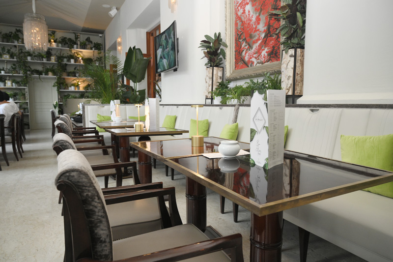 Avant ou après le dîner, à partir de 19 heures et jusqu’à 2 heures, dans une ambiance musicale invitant à la détente, Le Boudoir Majestic vous accueille sous son élégante verrière végétalisée ouvrant sur un oasis de verdure à l’ambiance feutrée et conviviale, au chic décontracté d’un palace de la Croisette plus que centenaire. Aux commandes du bar, Emanuele Balestra, l’un des meilleurs barmen du monde, a su se construire une belle célébrité avec ses cocktails gourmands. Ses créations fleuries agrémentées des saveurs de Mère Nature font la part belle aux plantes, fruits et sirops “maison”. En discutant un peu avec cet alchimiste hors normes, vous serez surpris de savoir comment ses délices empruntent des chemins inattendus pour arriver jusque dans vos verres. Il vous étonnera également par les combinaisons imaginatives et surprenantes de ses potions magiques et bienfaisantes.
