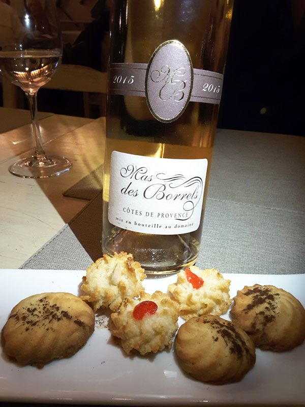 L’expresso à l’Italienne et ses Mignardises terminait le repas arrosé de vins Blanc et Rouge de Toscane et de Côtes de Provence.