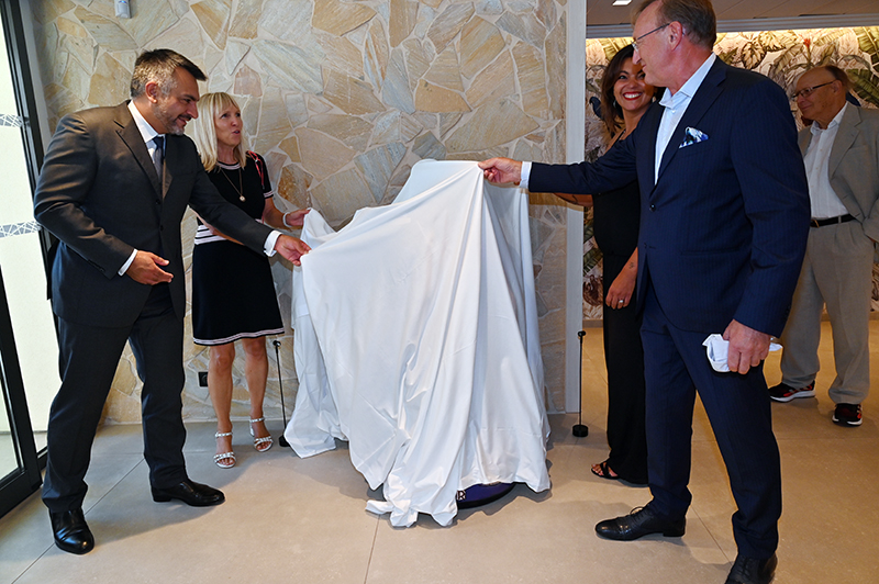 Après le dévoilement de la plaque gravée au nom du resort, le dévoilement de l’œuvre artistique de Joy’ suivi des discours officiels, sur la terrasse panoramique surplombant les eaux de la Siagne, un délicieux Cocktail concocté par Raffaele Fontana, le chef exécutif de l’établissement gastronomique et sa brigade ont marqué d’une pierre blanche, l’inauguration du rutilant L’Îlot du Golf****
