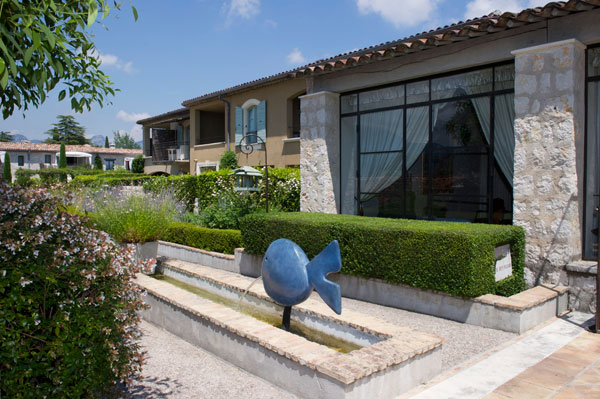 Telle une luxueuse résidence provençale, le Mas de Pierre a la particularité de séduire autant les couples que les familles. Autour du bâtiment d’origine, la Bastide des Fleurs, cinq bastides provençales baignent dans le charme romantique dont l’une comprend six suites avec piscine privée et service majordome, au sein d’un vaste et luxuriant jardin méditerranéen. Ce lieu délicieusement parfumé, offre une multitude de coins et recoins propices à l’émerveillement ou la détente dans le glouglou apaisant des fontaines. Modelés par le paysagiste grassois Jean Mus, les jardins méditerranéens et espaces paysagers, plantés d’essences provençales et d’oliviers centenaires, se peuplent de sculptures monumentales d’artistes contemporains illustres comme Folon, Sosno, Lapie, César, Tobiasse…