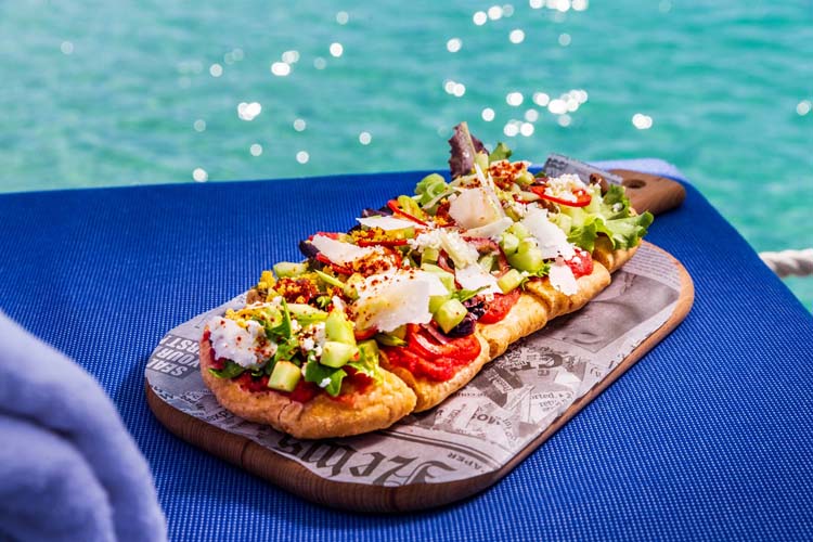 Au Jardin du Martinez, la carte est signée du chef étoilé Christian Sinicropi. Le chef exécutif du restaurant La Plage du Martinez joue l’originalité en proposant une subtile combinaison culinaire mélangeant les saveurs de la Méditerranée, de l’Asie et des Tropiques. L’Antipasti Bowl, la Fougasse, le Tropical Ceviche, le Beef Gauch ou les Dim Sum maison sont une ode au bien manger. Le met Healthy Poke Bowl a été choisi comme Plat Solidaire. Ainsi à chaque commande, 1 Euro est reversé à l’association Sourire et Partage qui vient en aide moralement et matériellement à des enfants malades et à leurs familles.
