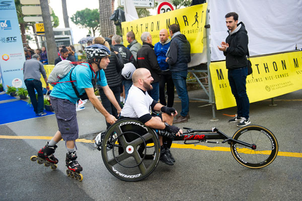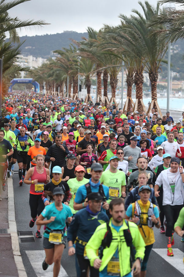 Dès 8 heures du matin aux abords de la Place Masséna et de la Promenade des Anglais, ce sont près de 11 000 marathoniens de toutes nationalités qui s’étaient amassés pour se lancer dans la bataille du jusqu’au-boutisme, de l’effort personnel ou du chrono collectif. La foule bigarrée de sportives et sportifs arborait shorts en satin, maillot fluo ou tee-shirt de l’UNESCO, en soutien aux candidatures de Nice pour sa célèbre Promenade des Anglais et de Cannes pour sa mythique Croisette. D’humeur à la fois joyeuse et anxieuse, beaucoup se demandaient s’ils arriveraient à franchir la ligne d’arrivée de ce 11ème marathon au bout de ses 42,195 km de course au bord de la Grande Bleue.