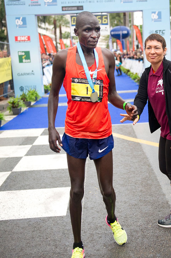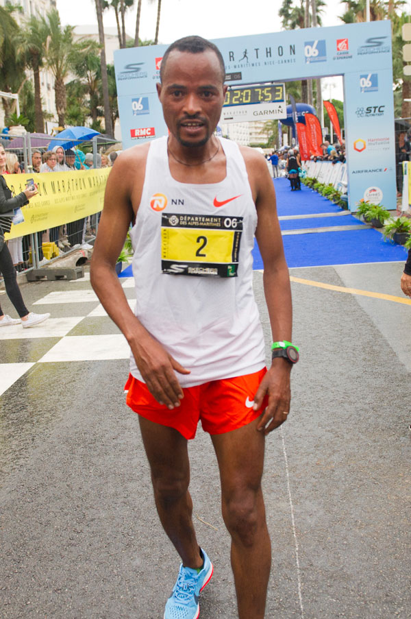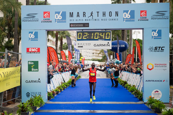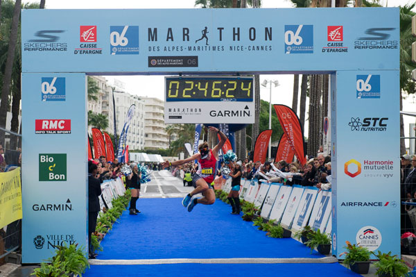 Le record du Marathon Nice Cannes, détenu depuis 2011 par Lukas Kanda, est tombé. L’Éthiopien Abrha Milaw, dossard n°2, a franchi la ligne d’arrivée devant le Carlton sur la Croisette 2h 07 minutes et 25 secondes après son départ de la Promenade des Anglais. Son temps améliore le précédent record d’une minute et 14 secondes! Abrha Milaw devance Nickson Kurgat (Kenya) de 3mn 15 et Bernard Too (Kenya) complète le podium en 2h11 et 55 s.