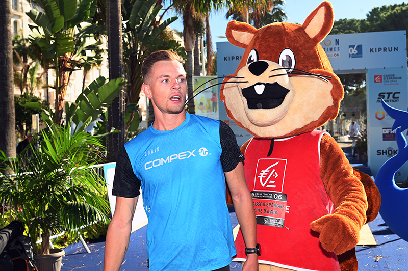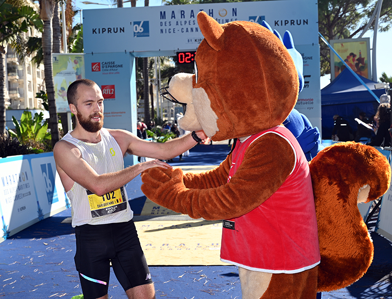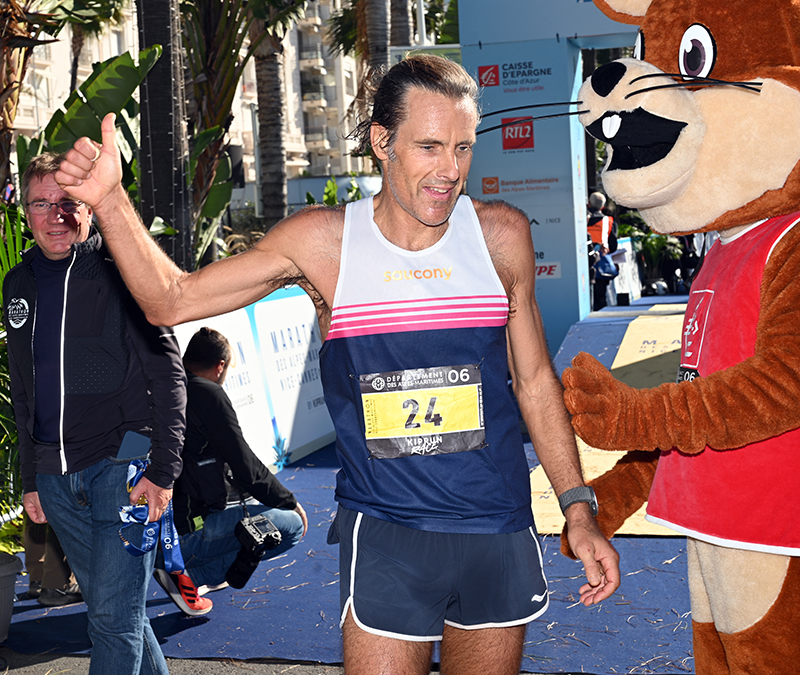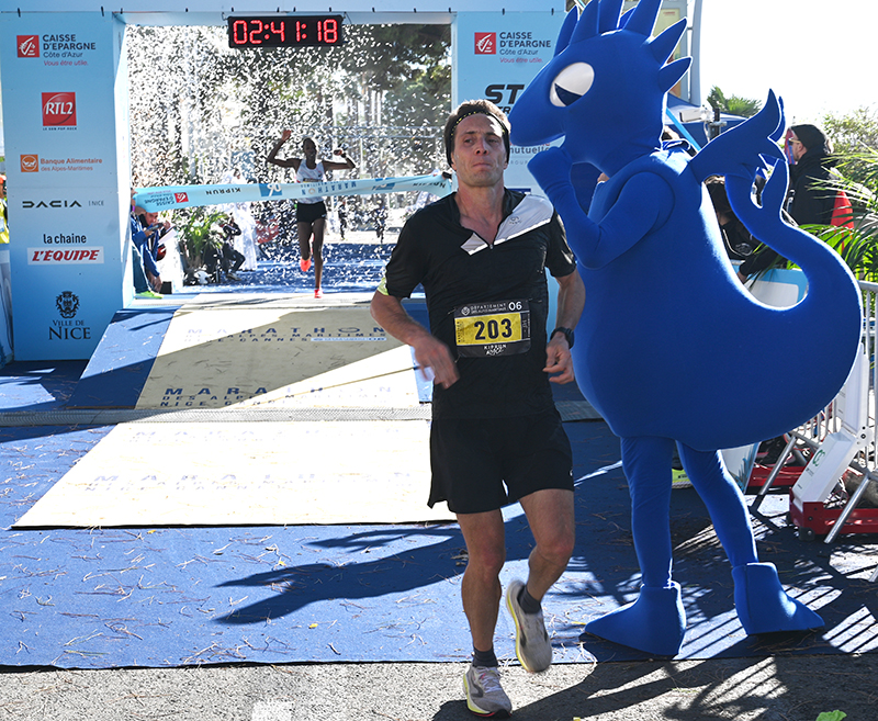 Malgré une alerte vigilance orange « vagues-submersion marine » qui avait poussé les organisateurs à modifier le parcours à la marge afin de garantir la sécurité de tous les coureurs au niveau du Cap d’Antibes, la fête a battu son plein. Sous un soleil radieux, contrairement à l’épisode méditerranéen qui s’était illustré par de fortes rafales de vents et de pluie la veille, l’optimiste était à son paroxysme lorsque les coureurs se sont élancés de Nice pour rejoindre la Capitale Internationale du Cinéma. De plus, et pour leur mettre du baume au cœur, de nombreuses animations sont venues émailler les 42, 195 km de course.