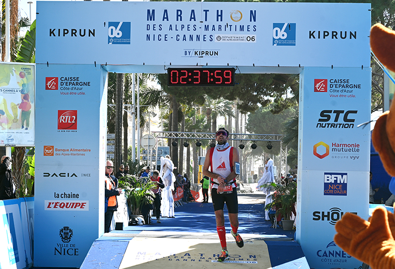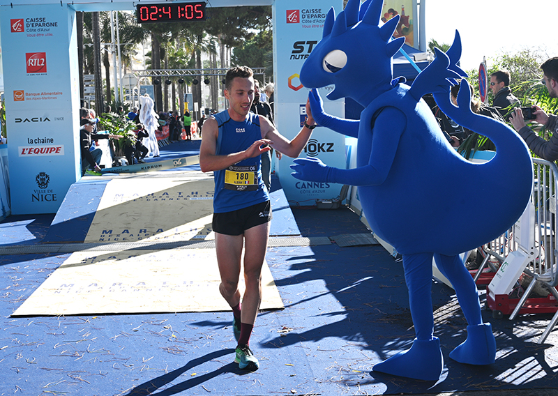 Comme à leur habitude, les champions de la discipline ont démarré sur les chapeaux de roues, vent de face et guidé par un lièvre jusqu’à mi-course. Arrivés à Antibes, les deux Kenyans prennent le large avec à leur trousse la Team Kiprun. Ces derniers les rattrapent et les quatre compères se livrent à un passage de relais successifs. Finalement, à quelques kilomètres de la ligne d’arrivée, le kényan Japheth Kosgei met le turbo pour s’emparer de la victoire en 2h14’37’’. Son frère Patrick Kosgei s’empare de la deuxième place avec un chrono de 2h17’51 » et Matez Zima (CZ) monte sur la troisième marche du podium avec un temps des plus admirable pour un européen : 2h31’22 ». Le premier régional, François Holzerni (NCAA) termine en 2h39’01 ».