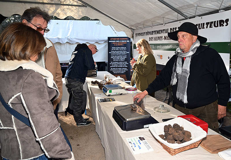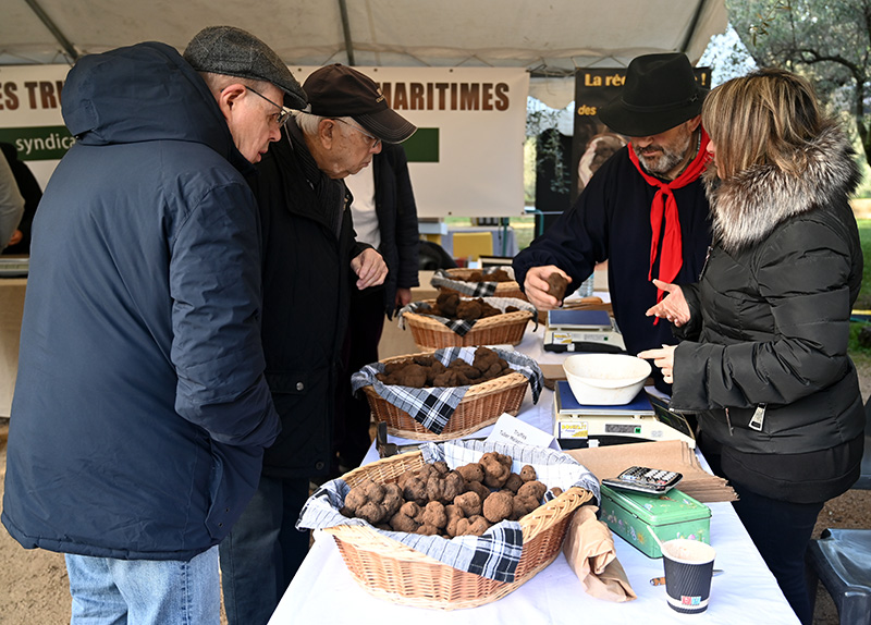 Les stands des rabassiers peuplaient le magnifique parc planté d’oliviers millénaires qui embaumait l’enivrant parfum de la truffe. Installés dans les jardins de la Bastide Saint Antoine, les stands ont proposé aux nombreux amateurs de la truffe fraîche provenant des Alpes-Maritimes mais aussi du Haut Var comme celles de la Maison De Santis du célèbre Domaine de Majastre.