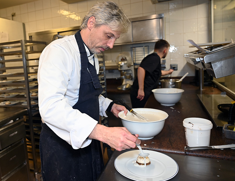 Depuis deux ans, Jacques Chibois a confié les cuisines de la Bastide à Jean-François Marre, trente-sept ans, dont dix passés au Grand Hôtel de Cannes où il fut chef en second de Sébastien Broda, Christophe Poard et Hervé Busson. Jean-François Marre n’est pas en terrain inconnu à la Bastide puisqu’il avait déjà fait un stage en pâtisserie à la Bastide en 2004, avant d’avoir fait ses classes chez Daniel Ettlinger – Clos Saint-Pierre – Le Rouret, Alain Llorca au Moulins de Mougins, Dominique Bucaille à l’Impérial Garoupe, Christian Sinicropi à la Palme d’Or, David Millet aux Airelles…