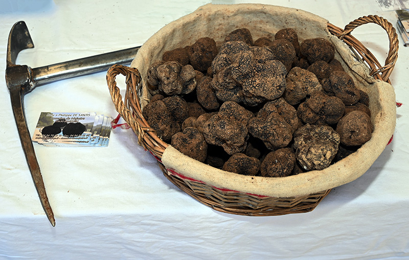 De nombreux produits régionaux et artisanaux autour du Diamant Noir ont fait saliver les palais gourmands des amateurs de ce précieux champignon noir et de ses produits dérivés. Truffes en conserve, foies gras truffé, huiles d’olives parfumées à la truffe et d’autres gourmandises comme le miel, les confitures, les escargots de l’Ode à l’Escargot de La Ferme de Nans à Saint Vallier, le Safran de Tanneron, les olives de pays, la charcuterie fine ainsi que divers préparations culinaires truffées, brillaient sur les étals des producteurs locaux. On trouvait aussi des vins du terroir provençal, comme les délicieux crus des Collines de Bellet (Domaine La source).