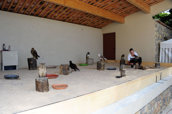 Présenté par les charmantes Laurie, Celia et Lucie de la Compagnie des Aigles de Gascogne, le spectacle de fauconnerie a révélé les secrets de cette « chasse au vol ». Depuis presque quatre millénaires, l’homme s’est allié le précieux concours de ces habiles chasseurs ailés, pour en faire un art, la fauconnerie, qui s’est développée au Moyen Age. La fauconnerie connaîtra son apogée sous Louis XIII, fauconnier dans l’âme. La vue des rapaces est exceptionnelle : rapportée à nos sens, elle permettrait à un « rapiat » de discerner une pièce d’un euro à 100 m ! Les trois demoiselles ont présenté des rapaces diurnes et nocturnes évoluant dans un envoûtant ballet et exposé au public les particularités de chacun des oiseaux. A l’issue du spectacle, les visiteurs ont pu aller à la rencontre de ces oiseaux fascinants.