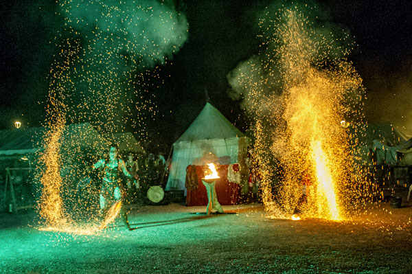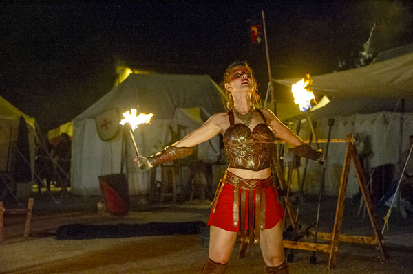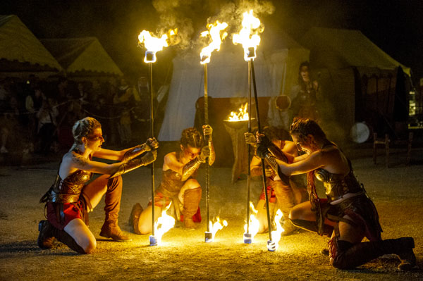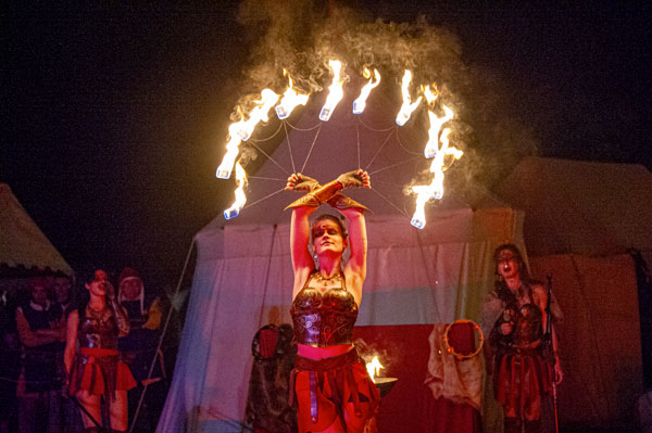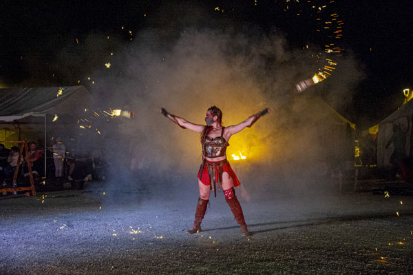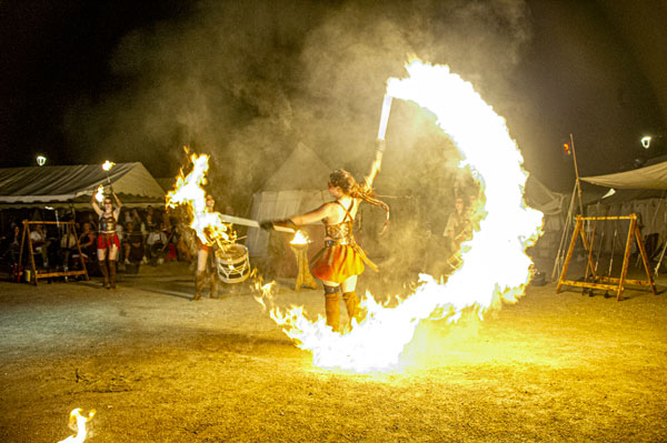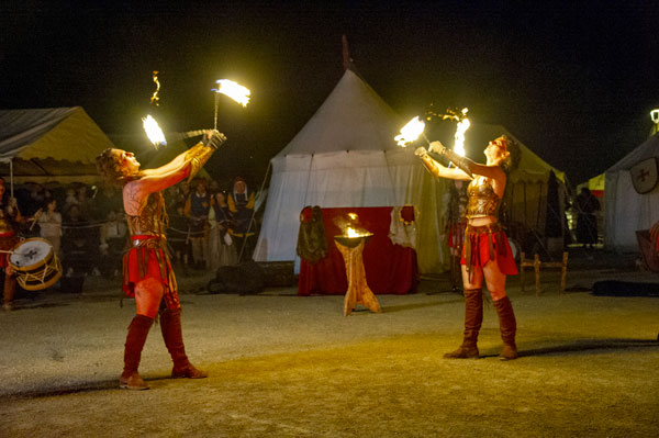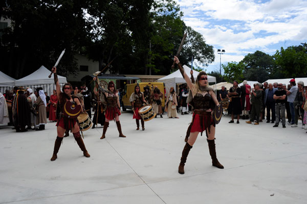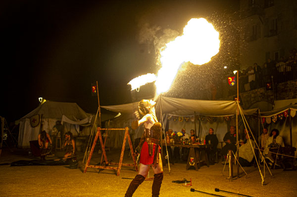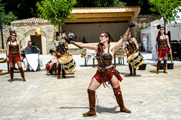 Partenaire de la Mairie et cheville ouvrière des Médiévales de Callas, la Compagnie des Cabris d’Argens, une association de passionnés du Moyen-Âge animée par Christophe Rubio – qui fêtait son dixième anniversaire cette année – a reconstitué les somptueux décors d’un camp de vie. D’autres « tribus » d’artistes amoureux d’histoire médiévale, ménestrels, troubadours et de spectacles de rue comme Les Univers Perchés de Bergol, La Compagnie des Aboyeurs, Les Vikings du Clan d’Elvie, I Sonagli Di Tagatam, Les Tritons Ripailleurs, Les Gardiens des Trois Croix, des personnages comme Le Colporteur ou le Prince des Dombes et ses Dames, des démonstration de vol de rapaces par la Compagnie des Aigles de Gascogne, ont fait revivre les légendes du Moyen Âge et entraîné le public dans l’imaginaire médiéval, ponctué des somptueux spectacles tambours et flammes des Dernières Amazones.