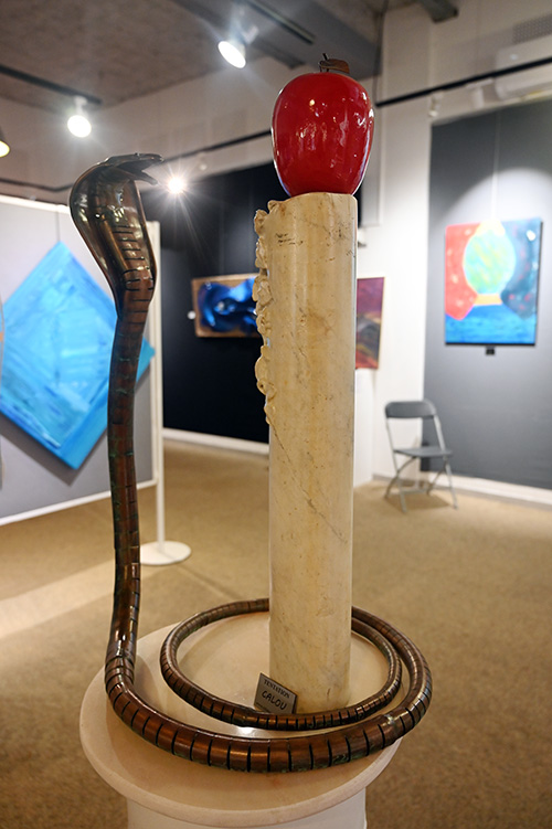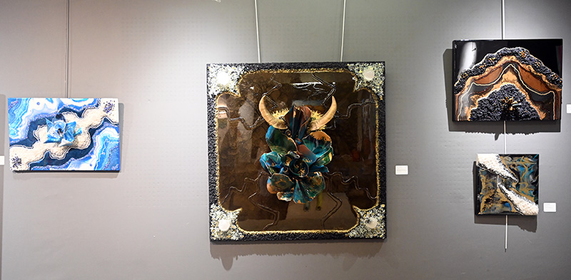 Les œuvres présentées à l’Espace Culturel de Théoule sont une symphonie de couleurs et de formes qui font voyager l’esprit dans un univers où le contemporain se mêle à l’abstrait. Imaginez un orchestre vibrant de contrastes, où les notes dansent sur la toile de l’innovation, créant une symphonie visuelle d’une intensité captivante. Leur composition sont semblables à des tableaux vivants où chaque mélodie est une touche de pinceau et chaque harmonie une explosion de couleurs. Les visiteurs se retrouvent emportés dans un mouvement d’émotions visuel et chacune de leur performance est un tourbillon de créativité, un feu d’artifice pour les sens, où la frontière entre la réalité et l’imaginaire s’estompe pour ne laisser qu’en toile de fond des compositions semblables à des tableaux vivants.