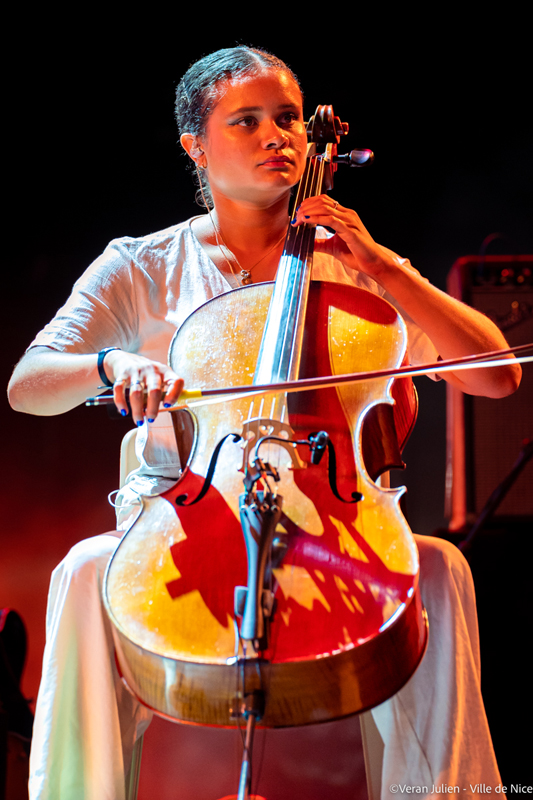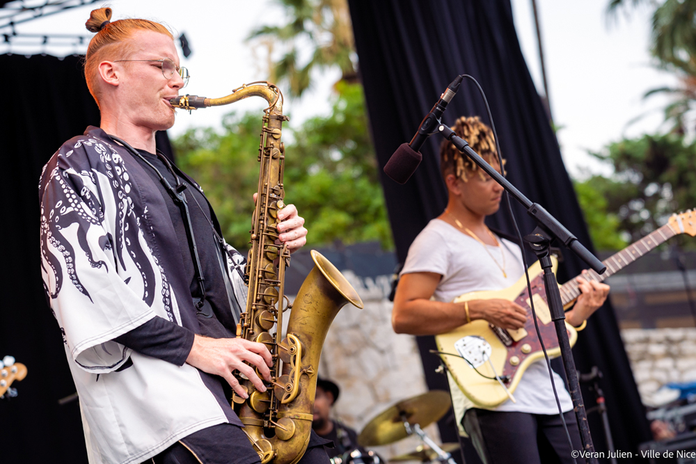 Pour ce quatrième jour de concert sur la Scène Massena, l’ambiance était toujours à son max et le public toujours aussi nombreux. L’auteure-compositrice-interprète Lous And The Yazuka, de son prénom Marie-Pierra, a passé son enfance entre le Congo, la Belgique et le Rwanda. A Nice, la belle est venue interpréter des morceaux de son répertoire aux sonorités de Rap, de R&b et de pop, portés par des instrus d’une efficacité redoutable. Privilégiant les textes percutants, sensibles et engagés, la jeune artiste a adopté son nom d’artiste à partir de l’anagramme Soul (âme), source de son inspiration musicale, et Yakuza, le nom qu’elle utilise pour décrire son équipe de collaborateurs. En interprétant quelques morceaux de son album Gore sorti en 2019 et produit par El Guincho, cette nouvelle révélation pleine de fraîcheur, a ouvert son univers musical et livré ses sentiments les plus intimes.