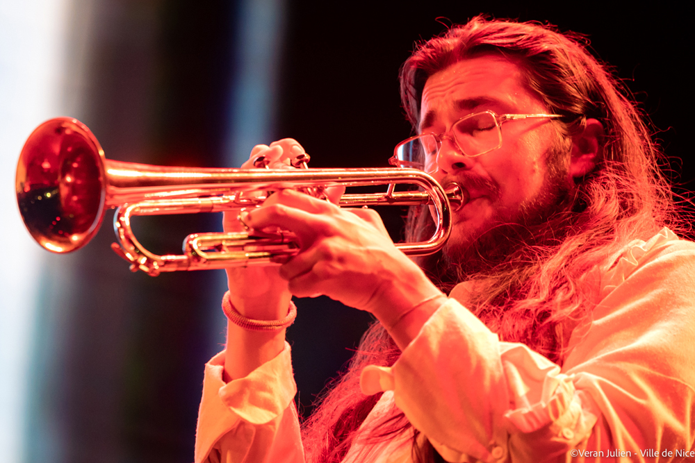 Du côté du Théâtre de Verdure, le pianiste et flutiste le plus surdoué de sa génération, pionnier d’un next gen français, Yessaï Karapetian a trouvé l’adjectif idoine pour qualifier son jazz: futuriste. A la croisée des musiques traditionnelles qu’il affectionne, du jazz, de la fusion ou encore de l’électro, ce véritable agitateur de culture musicale relève tous les défis avec talent. Ce phénomène qui vient de remporter le prestigieux LetterOne Rising Stars était accompagné à la basse par Marc Karapetian, le frère du leader, à la batterie par Théo Moutou, à la guitare Gabriel Gosse (un génie que l’on retrouve chez Christian Scott, Eddy de Pretto ou encore Katerine) et pour compléter cette formation cosmopolite et iconoclaste imaginée par Karapetian, le saxophoniste Mounir Sefsouf. La prestation live étincelante, magnétiques et puissante de ces cinq musiciens français à l’état d’esprit conquérant, originaires d’Arménie, de Guadeloupe, de la Réunion et d’Algérie, ont marqué du sceau de l’excellence les neuf compositions de l’album qui les accompagnaient.