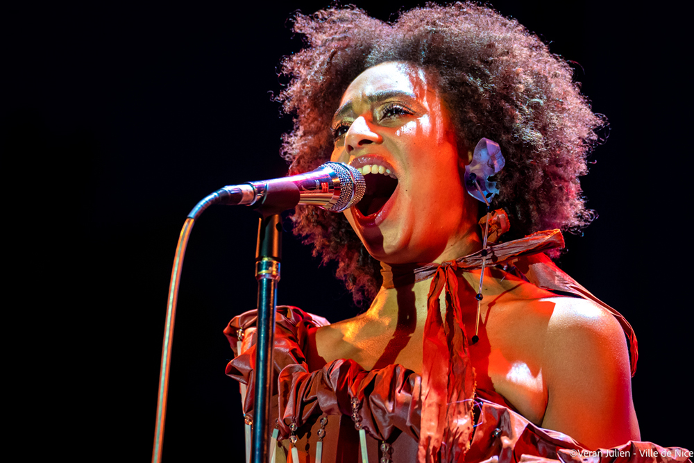Toujours dans le temple de la musique, et faisant suite à Lous And The Yazuka, la nouvelle étoile de la soul britannique, la chanteuse et compositrice anglaise Celeste a envahit la scène avec sa pépite musicale Not Your Muse (label Both Sides et Polydor). Un album qui, dès sa sortie, connait un succès phénoménale en se plaçant directement à la première place des meilleures ventes au Royaume Uni et collectionne rapidement de nombreuses récompenses et nominations. Cette collection de chansons somptueuses (Strange, Stop This Flame, A Little Love et Love Is Backtirées, Love Is Back…) est notamment marquées par le classicisme d’une écriture épurée et personnelle. Mais également par des arrangements amples et une voix tout en souplesse, qui n’est pas sans rappeler Amy Winehouse ou Adèle. Son timbre légèrement voilé, sa sérénité et son assurance impressionnante, sont les meilleurs atouts de cette voix féminine découverte au Nice Jazz Festival.