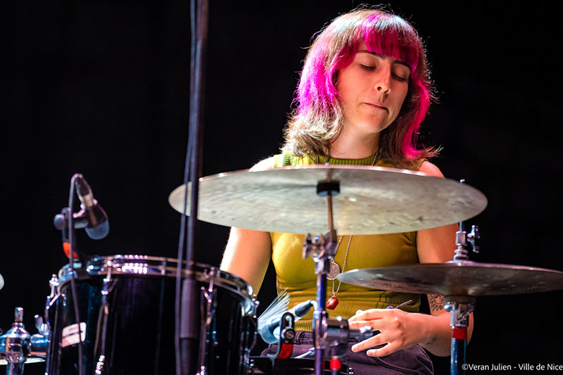 Avec son dernier album sorti en mars 2022: “S.H.A.M.A.N.E.S.”(écriture avec points et capitales, comme un manifeste), Anne Paceo a fait voyager les auditeurs sans qu’ils bougent de leurs gradins. Figure majeure de la nouvelle scène, trois fois primée aux Victoires du Jazz, la batteuse, chanteuse, autrice et compositrice qui a traverser 45 pays à travers 5 continents est venu au Théâtre de Verdure en apportant avec elle un chamanisme intemporel, “profondément humain ». Inspirée aussi bien par l’énergie des tambours de transe que par les chants sacrés, la musique, tantôt très acoustique et “brute”, parfois “texturale”, cette nouvelle composition interprétée au Théâtre de Verdure s’est avérée comme un voyage, introspectif tourné vers le monde. Il est vrai qu’après Fables of Shwedagon ou Bright Shadows, pas très étonnant de voir Anne Paceo tirer un peu plus sur le fil du travail vocal et des percussions. Très physique sur scène, cette chanteuse et compositrice géniale et passionnante, au regard pétillant, sourire aux lèvres possède une frappe implacable. Celle qui, à l’instar des hommes, a su s’imposer à la batterie vient de franchir un nouveau cap et vogue désormais vers son but de toujours: produire de la musique intimiste et spirituelle, libérée de toutes contraintes.