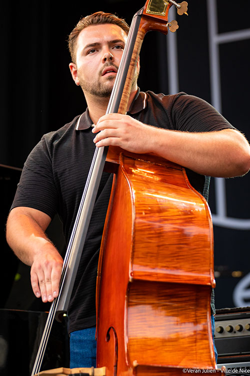 Changement de décor au Théâtre de Verdure. Pour bien entamer cette chaude soirée d’été, quoi de mieux que de venir poser ses fesses dans les gradins bondé du Colisée pour écouter Emmet Cohen, l’un des fers de lance de la nouvelle génération Jazz new-yorkaise. En complète communion avec son incroyable contrebassiste tokyoïte, Yasushi Nakamura et son fabuleux batteur angeleno Kyle Poole, le pianiste interprétant le jazz de Duke Ellington, Count Basie, Oscar Peterson et McCoy Tyner en passant par Bobby Timmons, a rapidement tissé des liens de complicité avec le public. Avec ce Jazz dans lequel le Blues, le Ragtime, le Swing s’invitent régulièrement sans laisser de répit, impossible de tenir en place. Par l’énergie communiquée, qui émane de son jeu, les corps et les pieds n’ont qu’une envie : danser, bouger, swinguer. Son touché mesuré et agile, son vocabulaire harmonique chaleureux et son stride implacable qui montent sur scène, provoquent des applaudissements nourris qui en disent long sur l’engouement du public qui, à coup sûr, n’est pas venu par hasard.