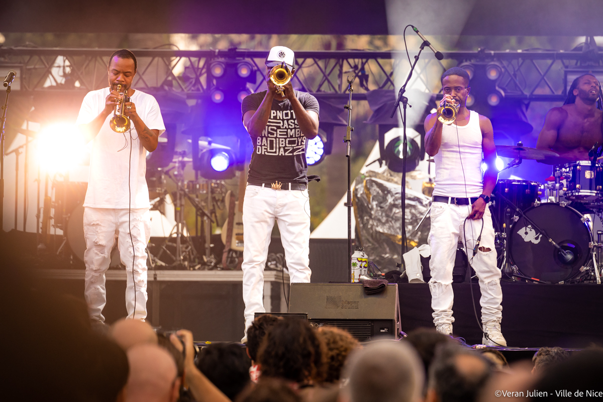 Au 74e Nice Jazz Festival, la programmation du 17 juillet, toujours aussi intense et diversifiée, s’est poursuivie sur la Scène Massena avec les groupes Hypnotic Brass Ensemble, Deluxe et Parcels et au Théâtre de Verdure avec Emmet Cohen, Anne Paceo et Avishai Cohen Trio.