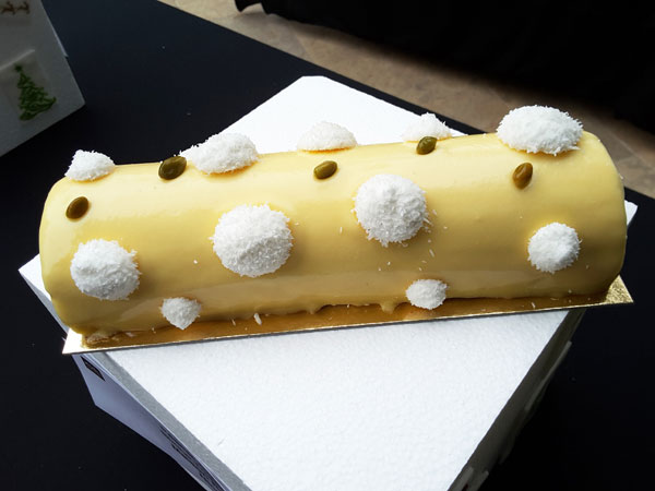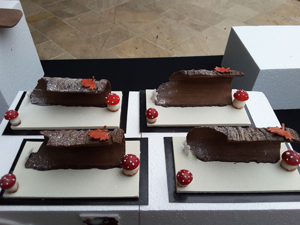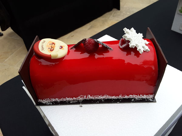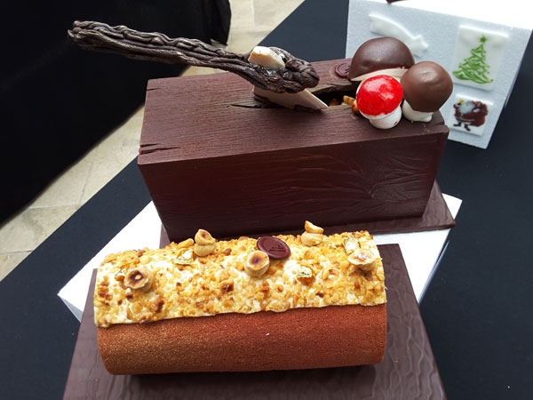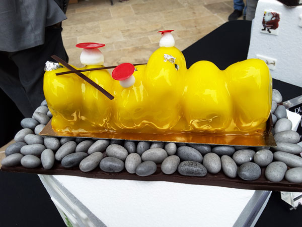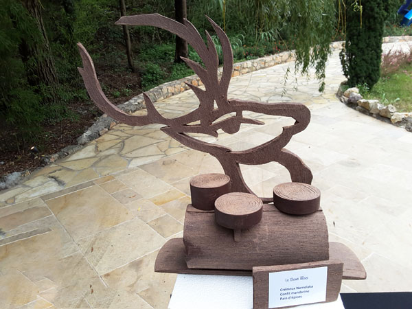 Sur chaque table, trônait les plus beaux chef-d’œuvres sucrés des chef pâtissiers de renom comme Stéphane Mangin de La Bastide Saint Antoine de Jacques Chibois à Grasse exposant sa Bûche Chouchou au nougat à l’orange et au citron. Pascal Lac de la Pâtisserie Lac à Nice présentait La Perle: biscuit madeleine, mousse vanille, biscuit cuiller, compotée de fruits rouges, La Désir: dacquoise noisette, praliné amande noisette, ganache montée, La Canadienne: crémeux poire, mousse érable mousse nougat, pâte a choux garnie mousse nougat pate a choux garnie.