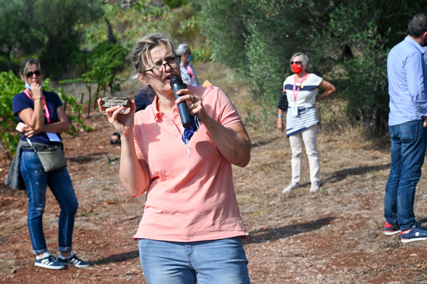 Mireille Conrath, œnologue et responsable technique au Syndicat des Côtes de Provence, a brillamment retracé les événements géologiques qui ont donné les caractéristiques particulières actuelles du terroir Notre-Dame des Anges. Au Carbonifère à l’activité était volcanique, la chaine hercynienne atteignait 8000 m d’altitude en Provence. La chaine hercynienne a été érodée au Permien pendant des centaines millions d’années, avant d’être recouverte d’un océan qui a apporté des sédiments calcaires de – 250 à – 65 millions d’années. Au secondaire, des mouvements de plaques ont donné naissance au Pyrénées et au Alpes, soulevant Massif des Maures hors des eaux. Ainsi modelé, le paysage présente ainsi une collections de situations géologiques contrastées: roches métamorphiques comme les schistes rouges dans le Massif des Maures, roches altérées sur place, comme les grès permiens plus violacés, et apports de la corniche calcaire au Nord de la dénomination, dont les alluvions ont été charriés par les cours d’eau comme l’Argens ou l’Aille.