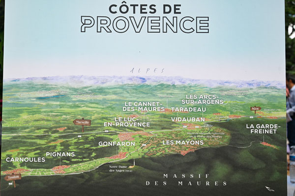 Bordée par le Massif des Maures, la dénomination Notre-Dame des Anges couvre un arc de cercle entre Carnoules et Taradeau au sein de la Réserve Naturelle Nationale de la Plaine des Maures. Elle englobe sur 3900 hectares, dix communes ou parties de communes: Les Arcs, Carnoules, Taradeau, Vidauban, Le Cannet-des-Maures, La Garde-Freinet, Le Luc, Les Mayons, Gonfaron, Pignans, regroupant quelque 400 hectares de vignobles. Trois cépages sont principalement cultivés: grenache, cinsault et syrah, complétés des cépages traditionnels de Provence: mourvèdre, tibouren, cabernet-sauvignon, carignan, clairette, sémillon, ugni blanc et vermentino (ou rolle), pour un rendement de 50 hectolitres/hectare. Premier né de la DGC, le millésime 2019 – entre 3 500 et 4 000 hl – a été produit sur 270 hectares de ce terroir. Les Rosés seront commercialisables dès le 15 décembre tandis que les Rouges demandent une année d’élevage.