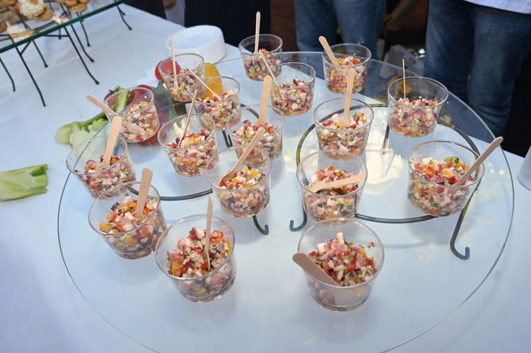 International-Club Toques Blanches Côte d’Azur: Salade de Poulpe du Mouré Rouge en Marinade, Effiloché de Volaille aux Fenouils et Miel, Blé Tendre Façon Pilaf, Salade de Tataki de Thon au Yuzu et le Saint Honorat à la Liqueur de Mandarine des Moines. Disciples d’Escoffier: Risotto aux Cèpes. Jacques Chibois: Velouté de Coco, Douceur de Cèpe aux Olives. Le Bistrot Gourmand: Fleurs de Courgette et Verrine Figue et Lavande. Christophe et Alexis Ferré – L’antidote et Côté Jardin à Cannes: Tartare de Thon Rouge de Méditerranée, Caviar d’Aubergine, Emulsion Bouratina. Macarons de Bruno Laffargue. Tout ces délices gastronomiques étaient accompagnés de la pétillante cuvée La Vie en Rose du Château Roubine et des vins de l’Abbaye de Lérins sur l’Île Saint Honorat.
